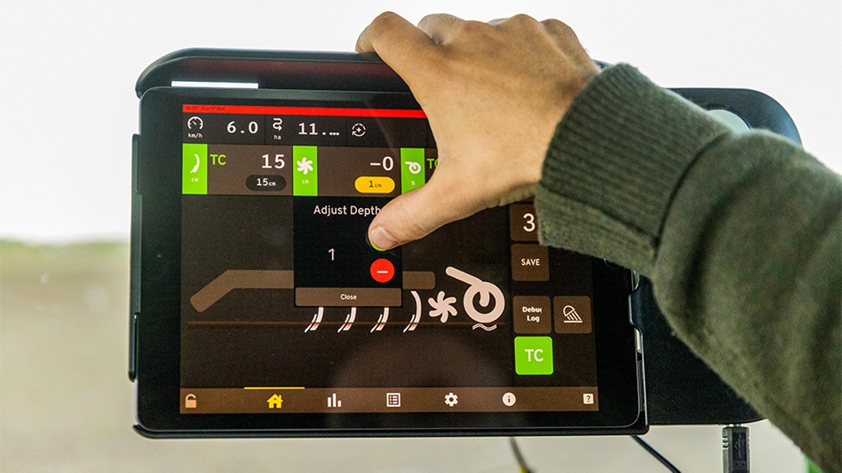 Використовуючи систему керування Väderstad E-Control на базі iPad, оператор отримує повний контроль над машиною безпосередньо з кабіни трактора. Одним натисканням кнопки водій може встановити індивідуальну робочу глибину або інтенсивність роботи дисків, лап, вирівнювачів або котка на ходу. Для полегшення роботи в полі можна використовувати чотири попередньо встановлені кнопки для зберігання різних конфігурацій машини.