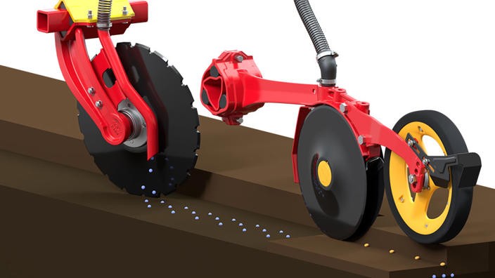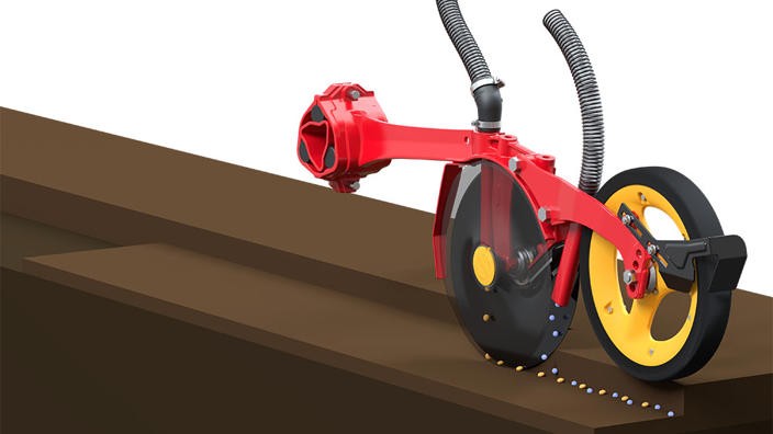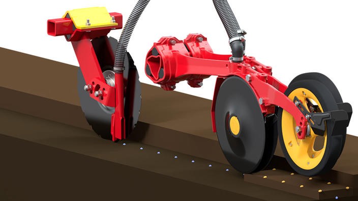 Завдяки цьому сім’япроводи розташовуються під кутом навіть у горбистій місцевості, забезпечуючи ідеальний розподіл по всій робочій ширині.