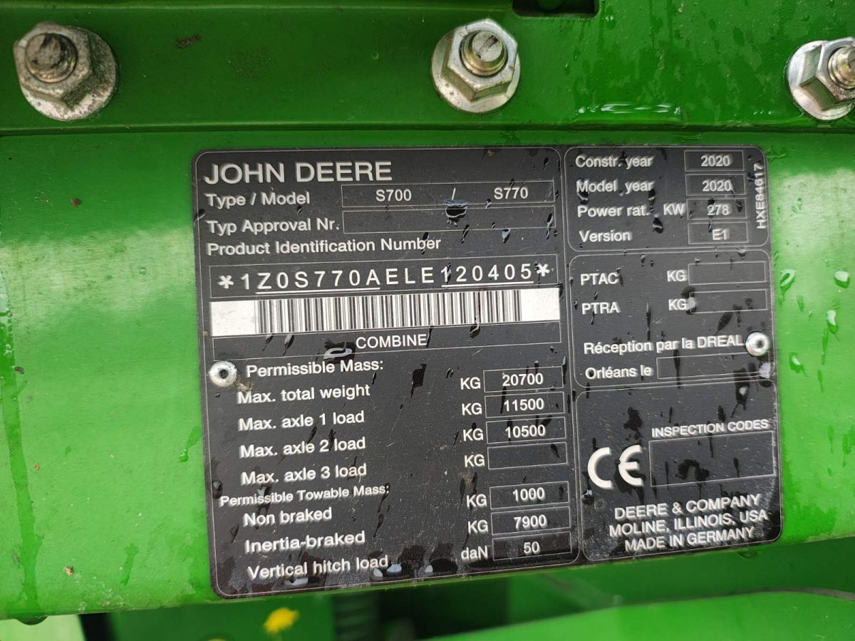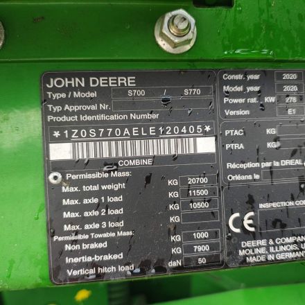 | Комбайн зернозбиральний, модель | S770 |