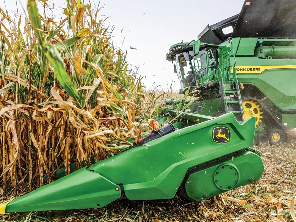Система навігації без втручання з боку оператора, яка завжди утримує машину в потрібному рядку під час збирання кукурудзи